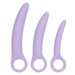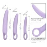 The graduated set has been created to rejuvenate vaginal muscles and reduce insertion discomfort with every use. Use the small dilator to begin and as you gentle exerciser and increase the elasticity of muscles, advance to the larger probes. The small exerciser measures 3” x 0.5” (7.5 cm x 1.25 cm), the medium is 3.5” x 0.75” (9 cm x 2 cm) and the large is 4.25” by 0.75” (10.75 cm x 2 cm). The hypoallergenic premium silicone is body safe, unscented and phthalate free to keep you most sensitive spots, happy and healthy.