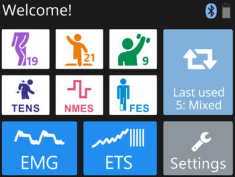 - New and Improved touch-screen with full colour display. The new user friendly interface makes it a self-explanatory unit with the interactive learning on the go, including electrode placement, running EMG graph , EMG biofeedback Games and Templates as well as many other helpful tools.