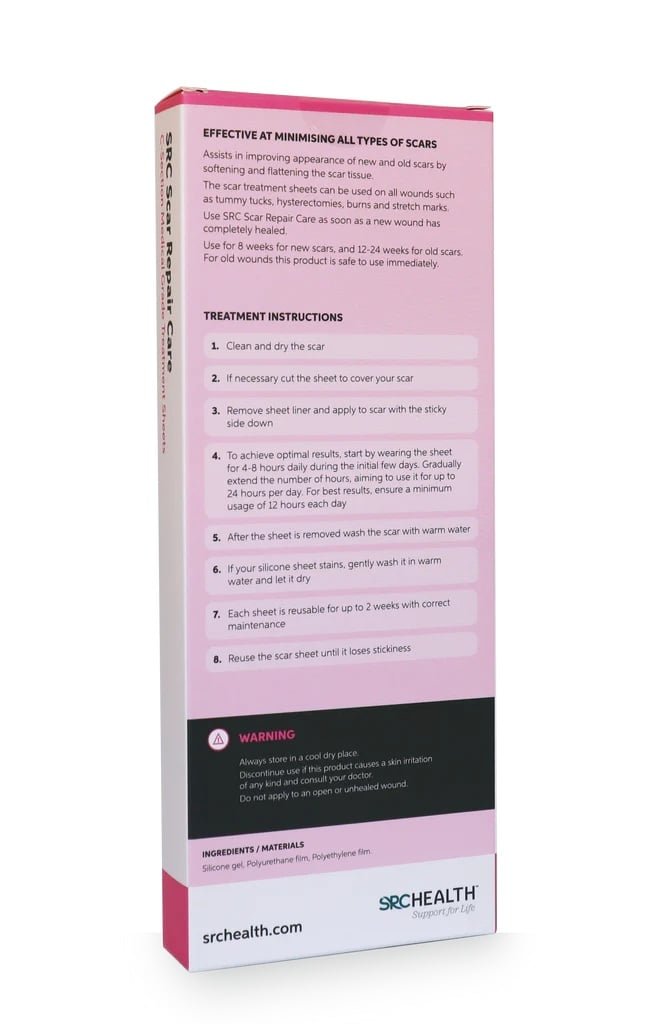 Upgrade your scar care game with SRC Scar Repair Care. Offering not only sizable, but multiple sheets, each measuring an impressive 20cm x 5cm, providing unmatched coverage to effectively fade all types of scars.